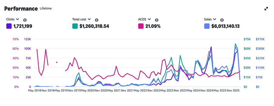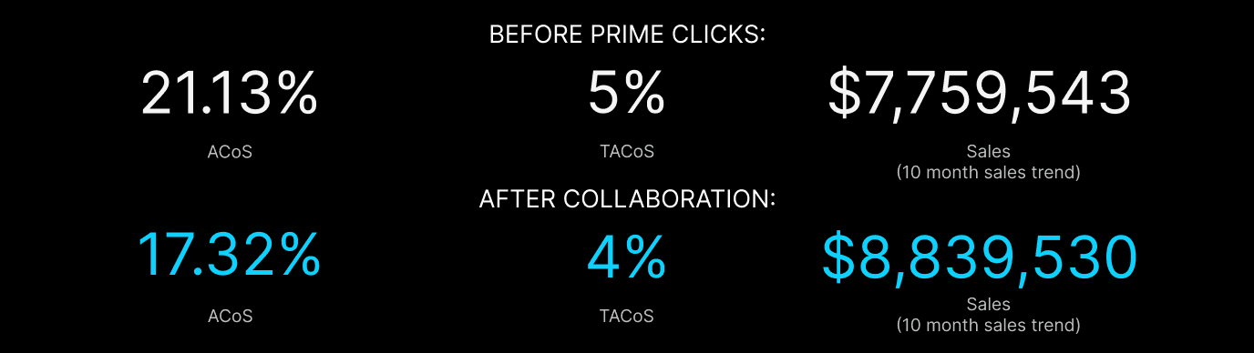 A toy brand partnered with Prime Clicks in April 2025 to improve Amazon advertising efficiency and scale products that were underperforming. The catalog included nine SKUs, three of which were already niche leaders.